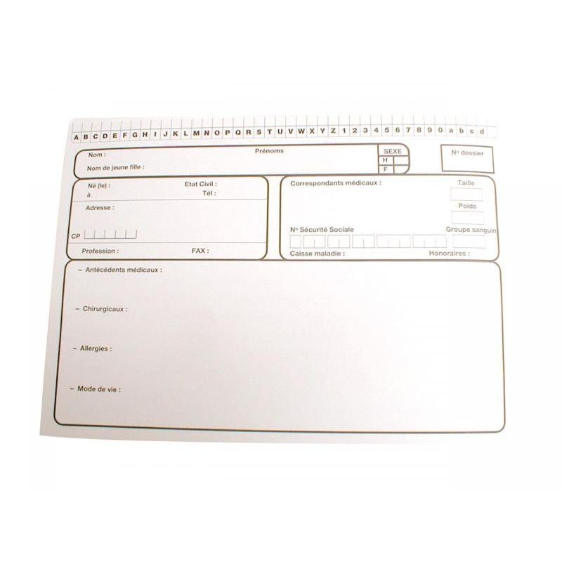 Fiches médicales Stern-Org. Fiches 3 volets. Impression en français. Emballées par 250 fiches. Fabrication COMED.