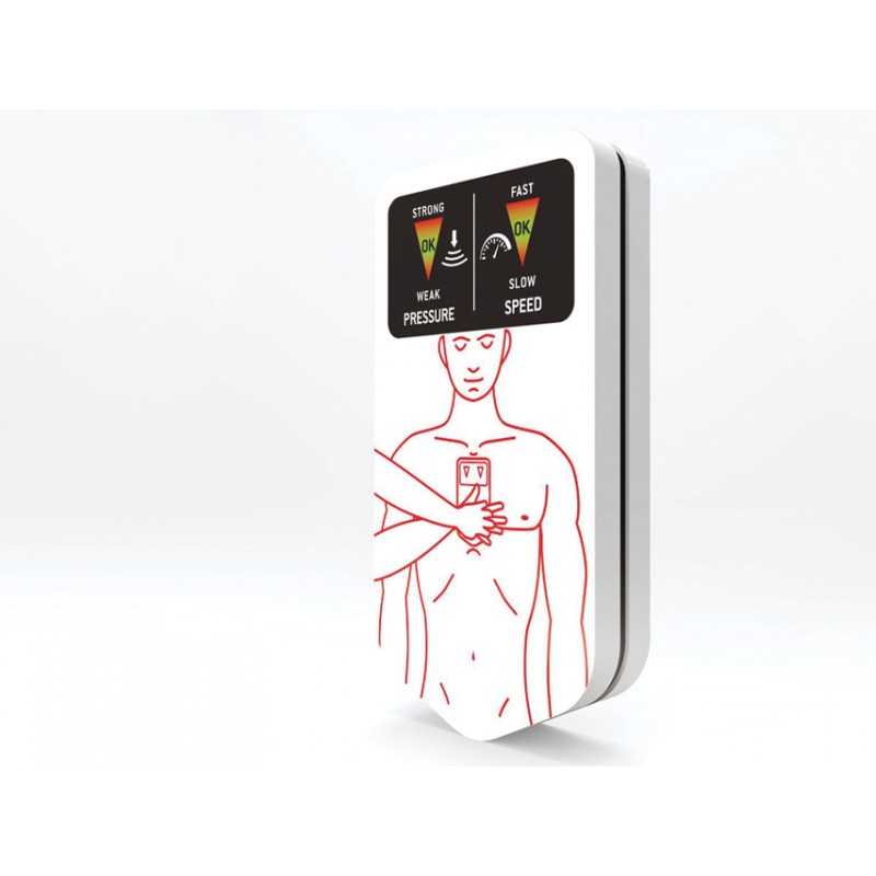 Le dispositif comprend des indicateurs lumineux qui communiquent et montrent au secoureur la pression correcte et la fréquence des compressions correcte. Le dispositif se combine parfaitement avec les mannequins mis à jour en conformité avec les lignes directrices internationales (Laerdal Medical, Brayden, ......) et il peut être utilisé avec le défibrillateur.
